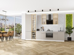 В комплект кухни Фьюжн входит: каркасы, фасады, столешница, петли, цоколь, ножки и комплект фурнитуры для сборки.