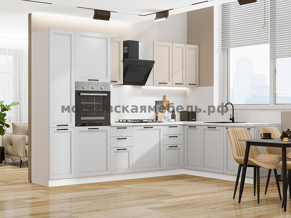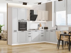 Кухня Нео-03 Белый/Cream Silk/Grey Silk 3/2.1 метра